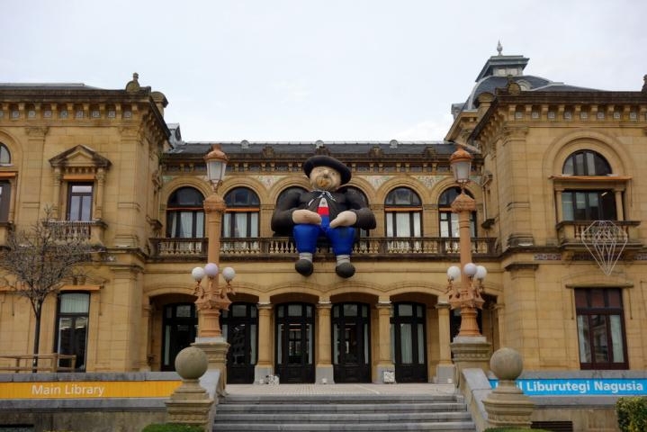 San Sebastian's town hall right near the beach- note the giant inflatable Basque man on the 2nd floor!