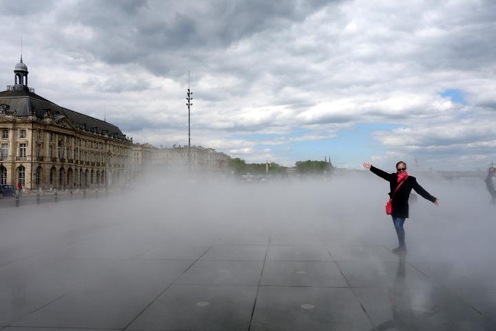 Across from Place de la Bourse is the Mirror Fountain, which is a new symbol of Bordeaux. Depending on time of day, it offers up a mist, solid water, or dancing spouts.