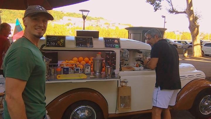Breakfast of champions!! A little food market was set up by the River Saone, and this man served espresso from his car.