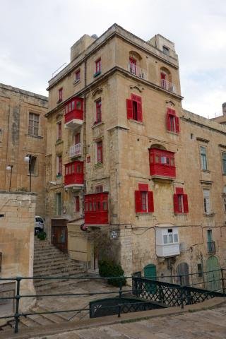 Valletta's houses all have these colored windowed balconies that flourished in the Middle Ages, so wealthy ladies could people-watch without being seen from the street.