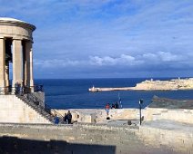 Also across from the Lower Barrakka Gardens is the Siege Bell Memorial. It was erected in 1992 to commemorate the awarding of the George Cross, and the WWII Siege from 1940-43. Note the enormous tomb on the right. symbolizing the Knights of Malta.
