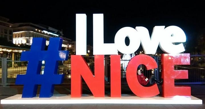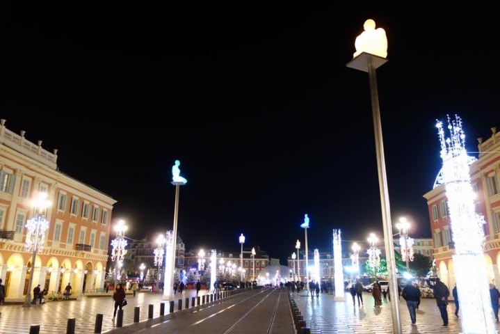 Nice has a very cool lighting installation- giant sitting men on poles, each lit in a bright pastel color.