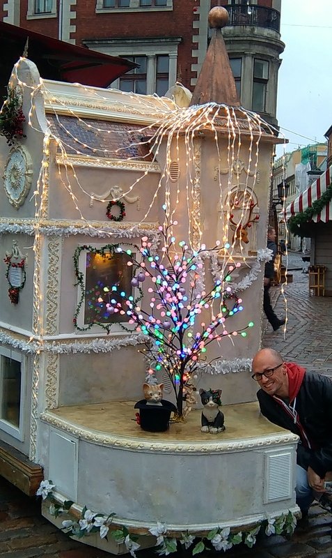 In the Christmas Market was this bizarre dollhouse filled with adoptable cats, put together by the local Humane Society. These poor kitties must have been freezing in their weird zoo