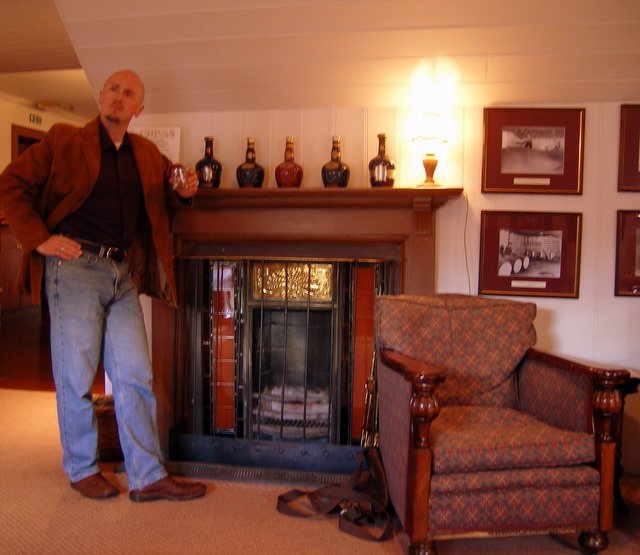 That sign behind me is correct. It does me good to drink whisky.