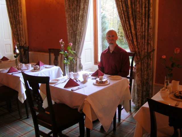 The grand entry hall of the Castle Hotel. Matt looks quite dashing in his new suede coat.