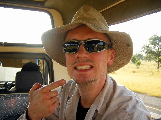 Vasco in the drivers' seat, in a lovely Botswanian morning sunbeam.