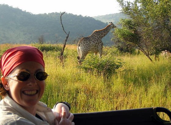 Matt poses with the giraffe.