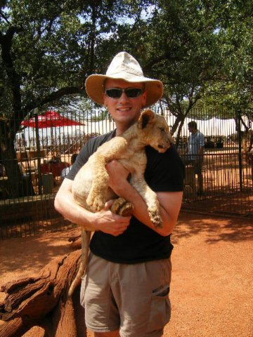 Matt takes a turn holding the cub.