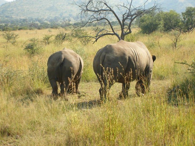 After our cocoa break, we had to stop our Jeep for a rhino family.
