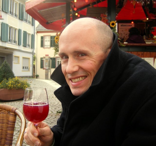 To our joy and amazement, we discovered in Rudesheim that Neuerwein comes not in white...but in red too. We braved the cold of an outdoor bar to try it.