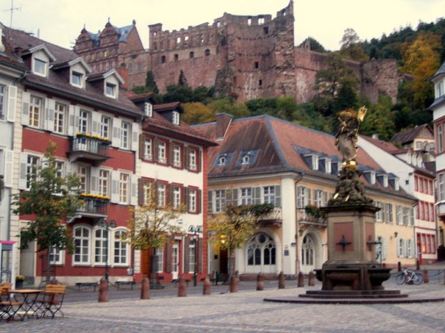 In the evening gloom, we get our first glimpse of Heidelberg's famous castle.