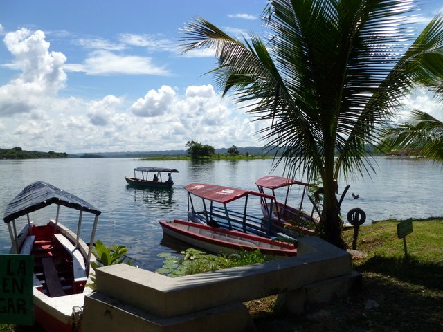 92 So here we are...after all those hours of bus travel, we awoke at 6am in Peten, in the north. This is jungle territory, so we found a little jungle hostel called Mon Ami, in the sleepy village of El Remate- about 30 minutes from the Mayan ruins of Tikal.