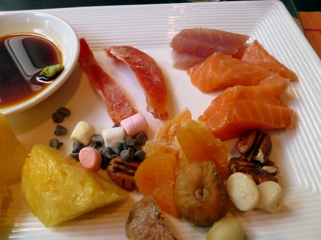 19 My Dinnerfast: sushi, dried mangoes, and marshmallows. For realz.