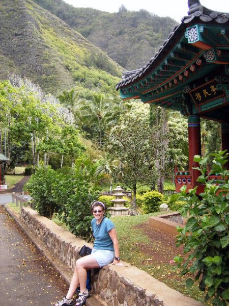 The Chinese pagoda against the gorgeous hills of the Iao Valley.