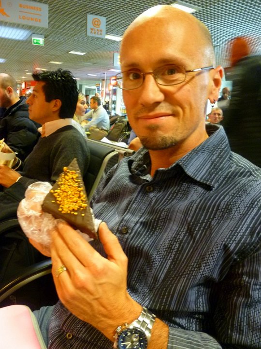 329 Last Polish zloty purchase: A slice of Krakow Pischinger Cake from the Krakow Airport cafe.
