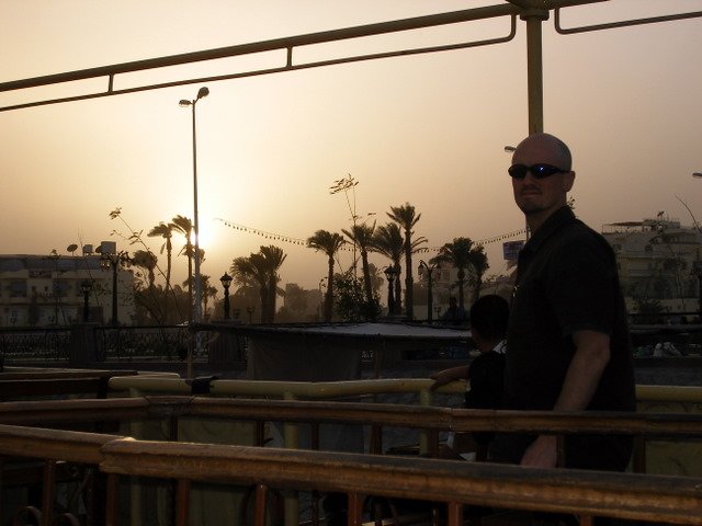 Riding the ferry back over to the East Bank. The sandstorm had dropped the temperature, and a storm was a-brewin'.