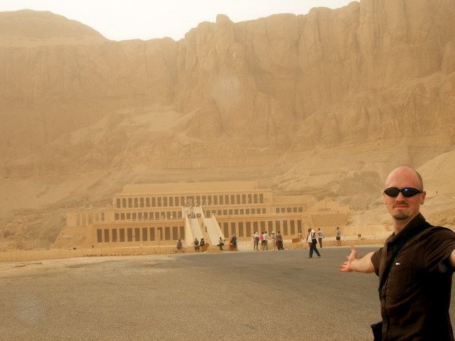 That's me, walking up to Hapshetsut's Temple....in a residual sandstorm.