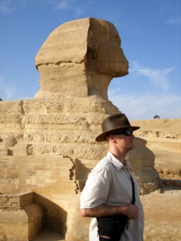The Sphinx, minus his nose. And contrary to popular myth, Napoleon didn't shoot off the nose (an angry Sufi Muslim destroyed it in the 15 century).