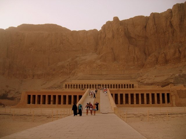 Our buddy Horus stands guard at the temple's walkway entrance.