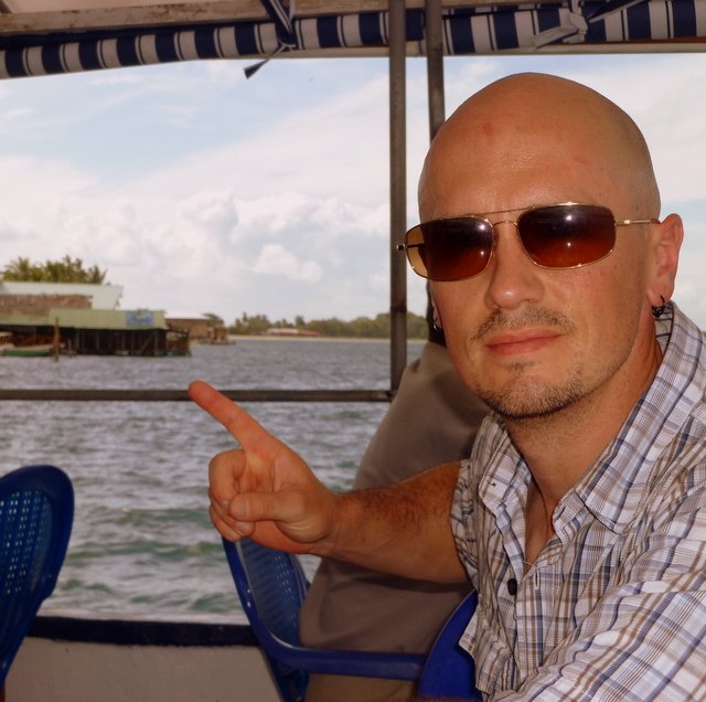 The view out our window: a vacant lot (an abandoned outboard motor is lying outside the photo), a decrepit dock, and someone's home. There are no chain hotels, skyscrapers, or swimming pools on this island. It was like the Caribbean of the 1940s. We loved it.