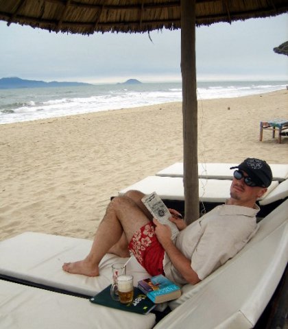 We sat on our beach lounges and enjoyed beer and fruit juice.