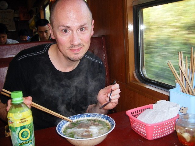 Matt is up and ready to greet the Central Vietnamese scenery zipping by.