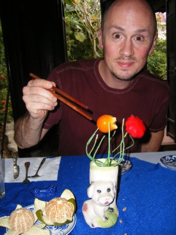 Sixth (and entree) course: Grilled Vietnamese beef, with a veg side. OK, not luscious like banh xeo. :)