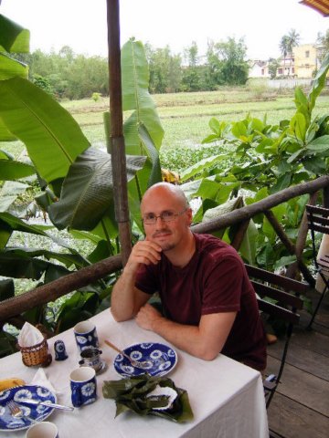 The Thien Thanh Hotel pool. Inside/outside, very typical of Hoi An.